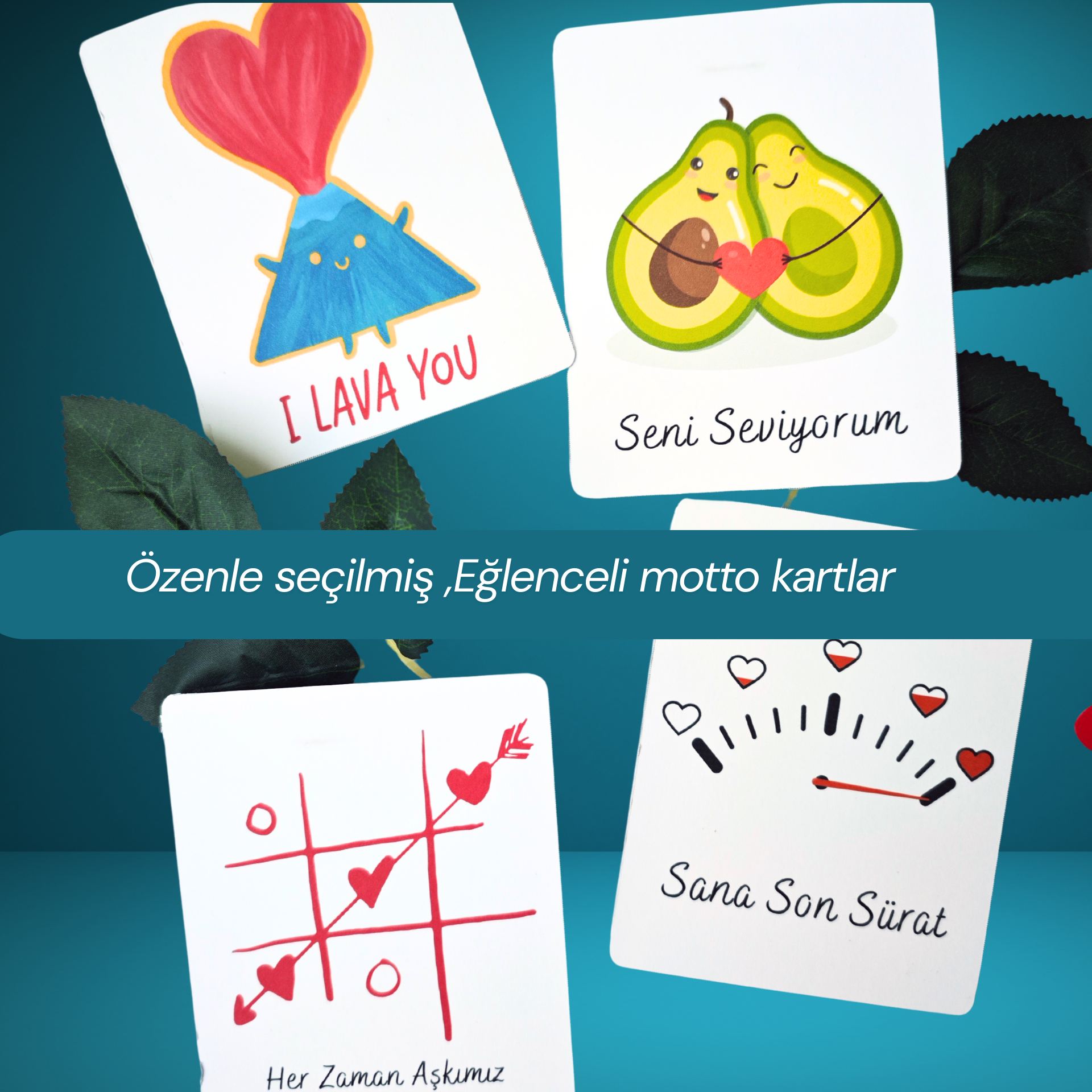 Kutunun içindeki 30 aşk mesajı, uzman ekibimiz tarafından özenle hazırlandı.